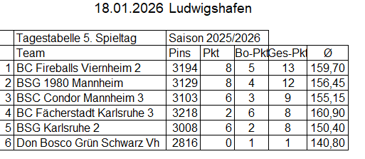 • Ergebnis 1. Bezirksliga 5. Spieltag 2025/2026